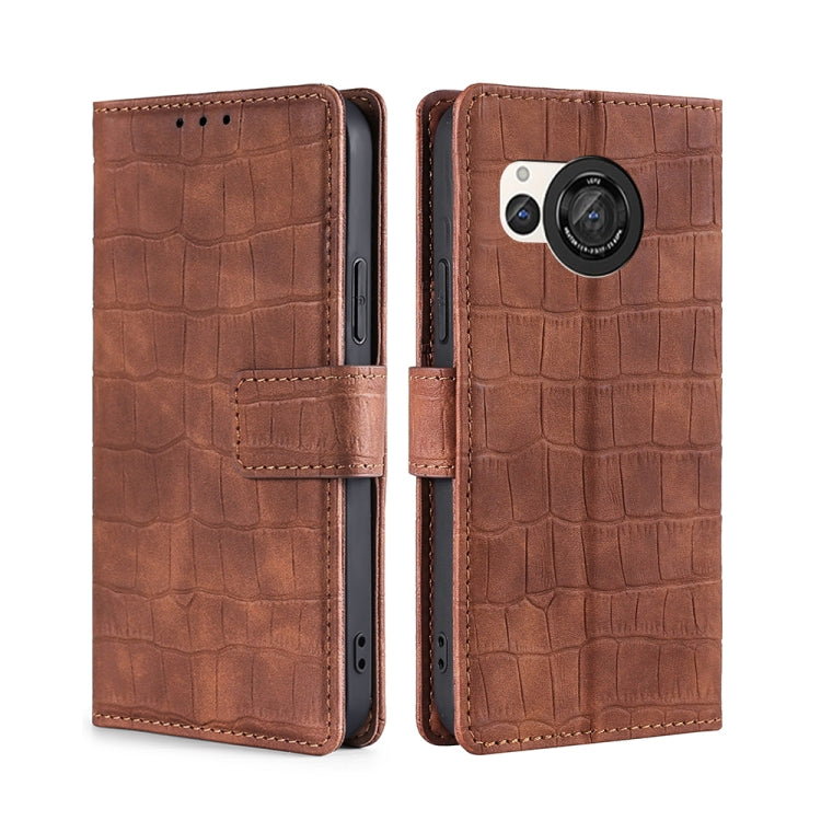 Funda de Cuero para Sharp Aquos R8 Sh-52D Skin Feel Cocodrilo con Cierre Magnético (Marrón)