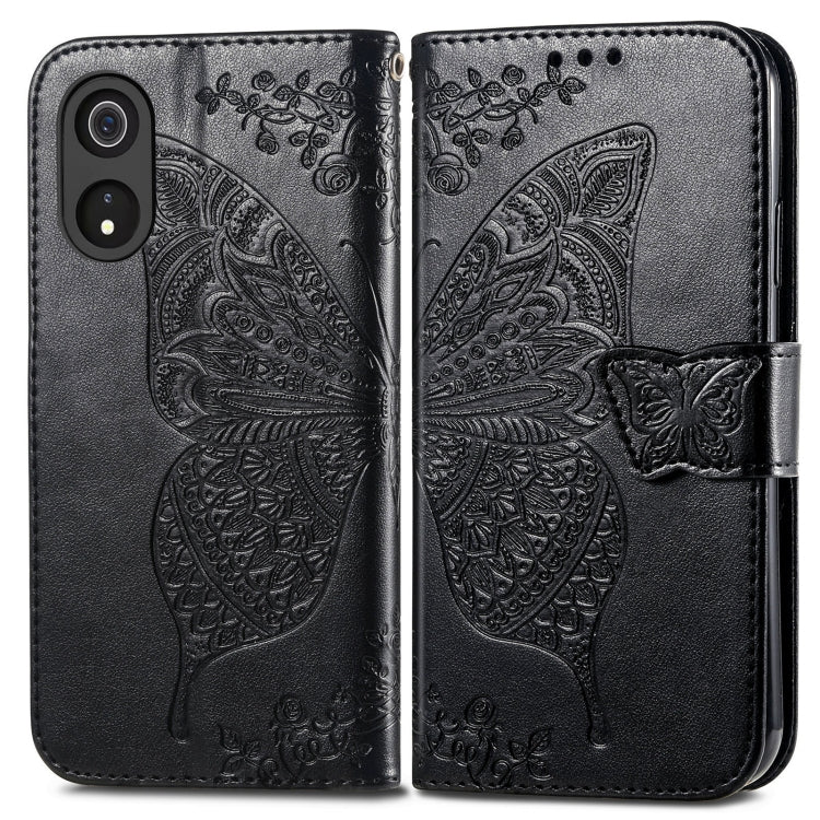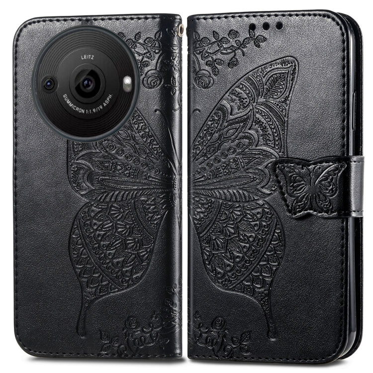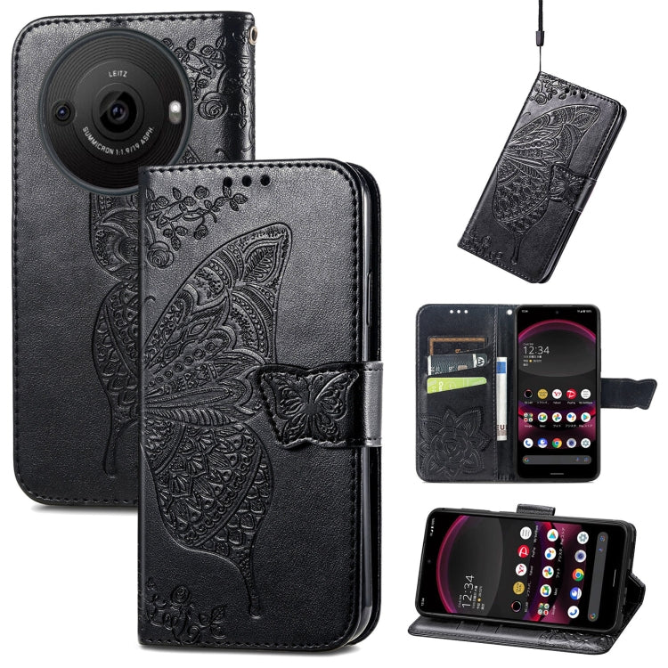 Estuche para Teléfono Sharp Aquos R8 Pro Butterfly Love Flower Cuero En Relieve (Negro)