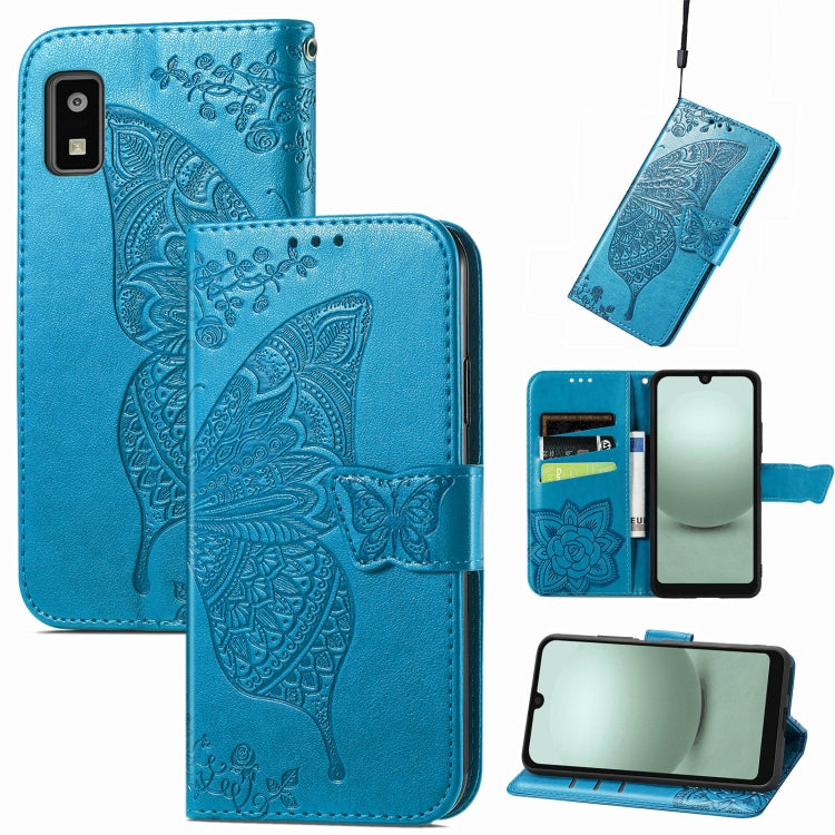 Estuche para Teléfono Sharp Aquos Wish 3 Butterfly Love Flower Cuero En Relieve (Azul)