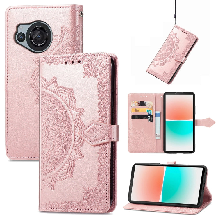 Funda de Cuero para Sharp Aquos R8 Pro Mandala Flower en Relieve (Oro Rosa)