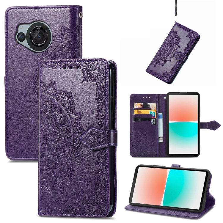 Estuche para Sharp Aquos R8 Pro Mandala Flower de Cuero en Relieve (Púrpura)
