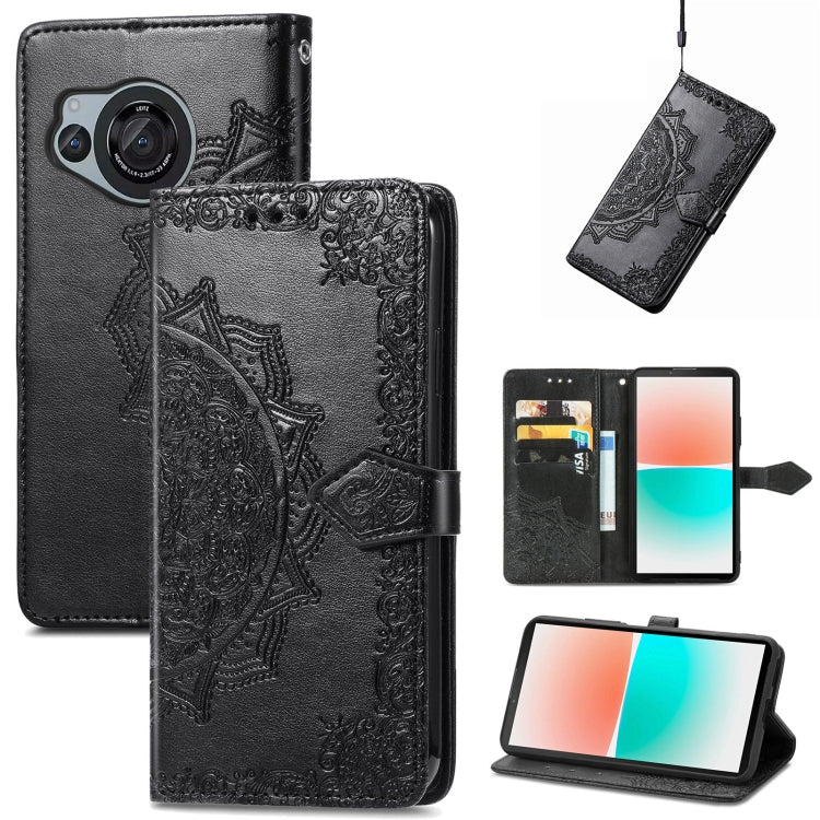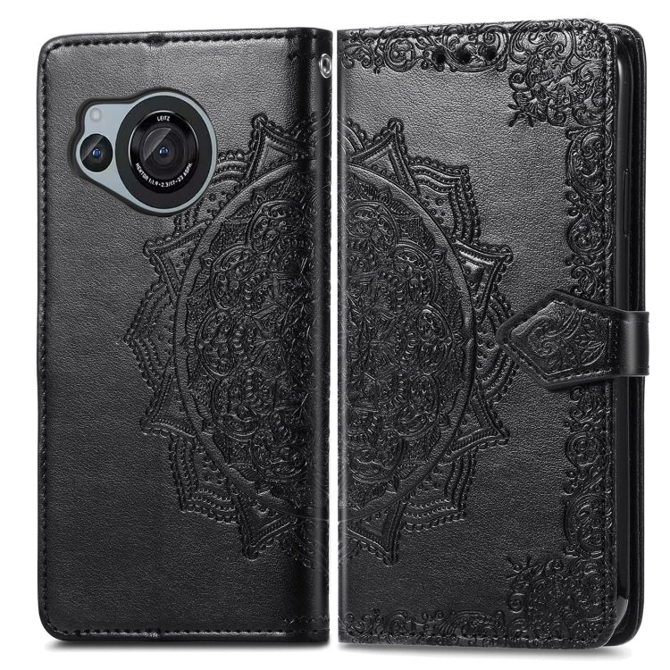 Funda de Cuero para Sharp Aquos R8 Pro Mandala Flower en Relieve (Negro)