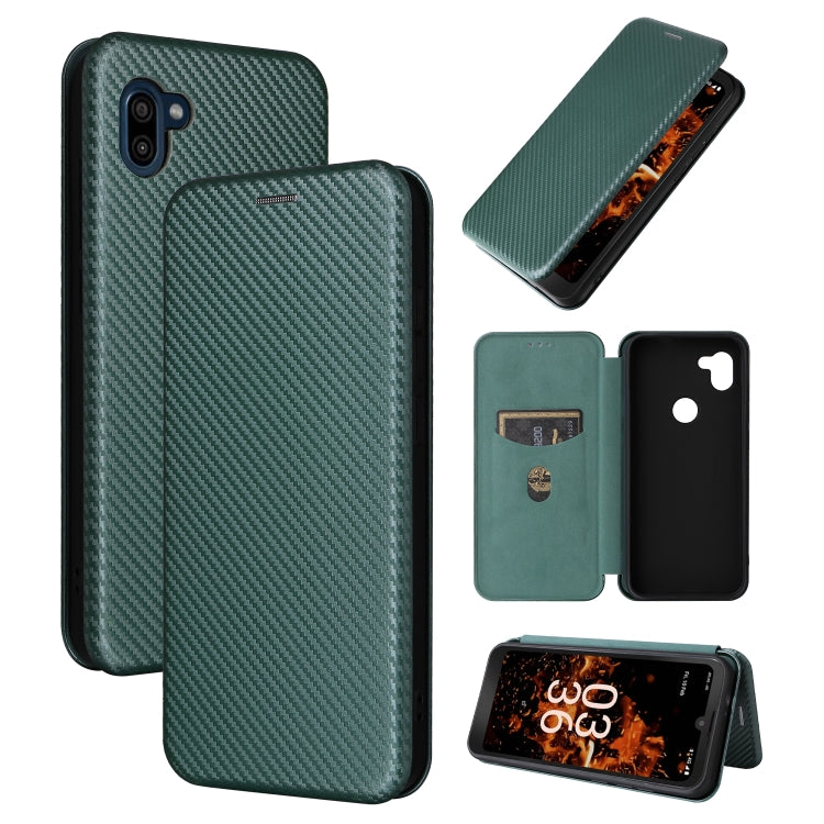 Funda de Cuero con Tapa para Orbic Fun + 4G con Textura de Fibra de Carbono (Verde)