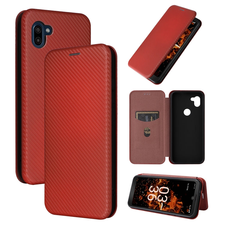 Funda de Cuero con Tapa para Orbic Fun + 4G con Textura de Fibra de Carbono (Marrón)