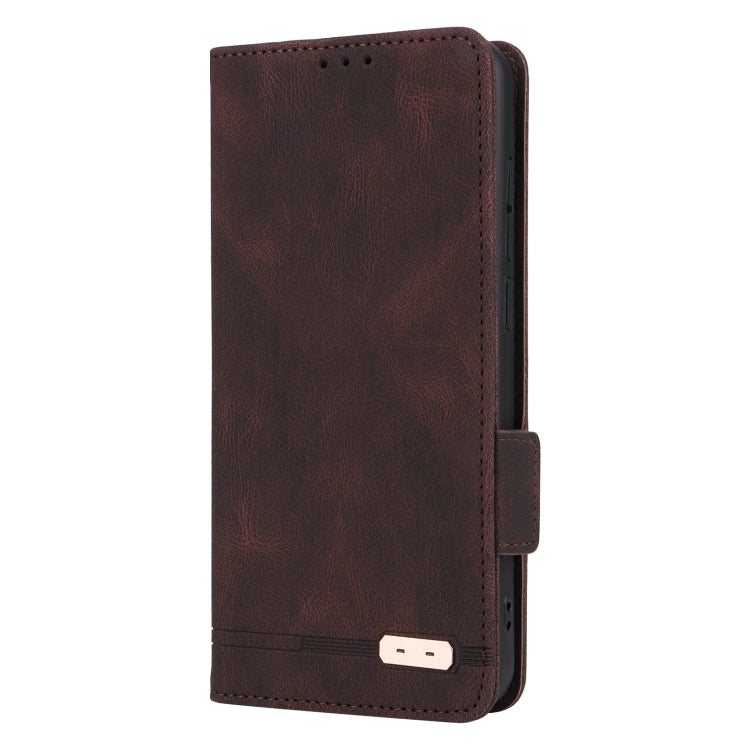 Funda para Sharp Aquos Sense8 Litchi Texture con Contraportada (Marrón)