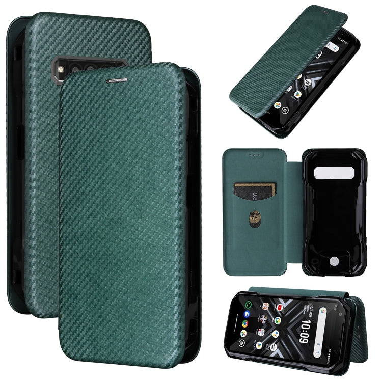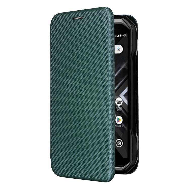 Funda de Cuero para Kyocera Torque G06 Kyg03 con Tapa y Textura de Fibra de Carbono (Verde)