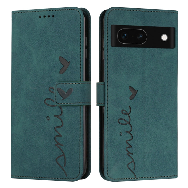 Funda para Google Pixel 8A Skin Feel Heart de Cuero En Relieve con Cordón Largo (Verde)