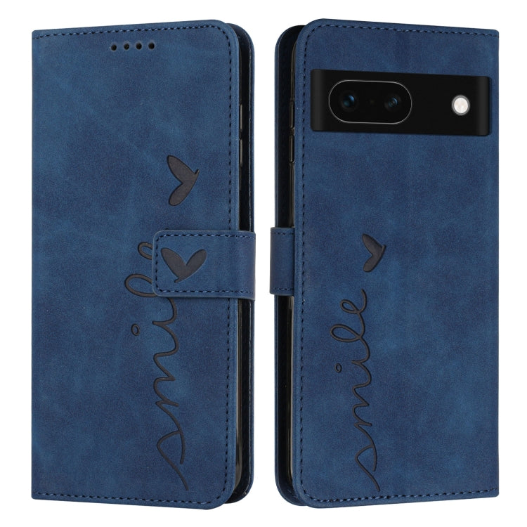 Funda para Google Pixel 8A Skin Feel Heart de Cuero en Relieve con Cordón Largo (Azul)
