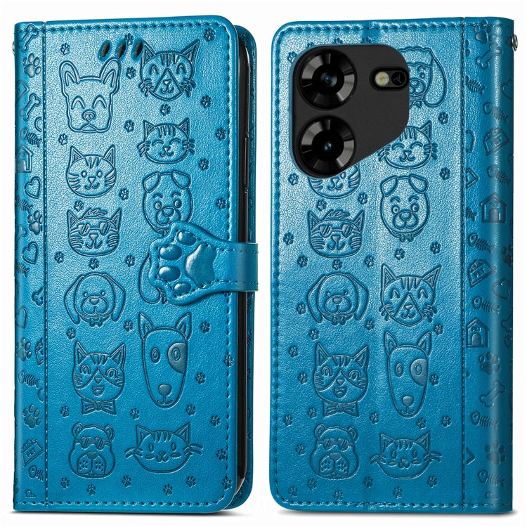 Funda de Cuero para Tecno Pova 5 4G con Relieve Perros y Gatos (Azul)