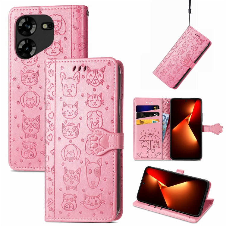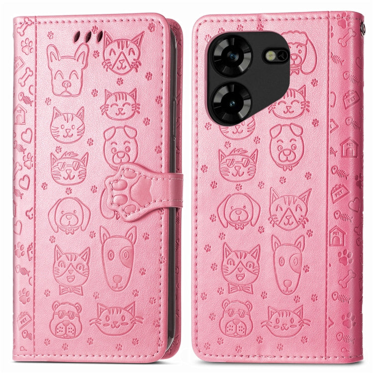 Funda de Cuero para Tecno Pova 5 4G con Relieve Perros y Gatos (Rosa)