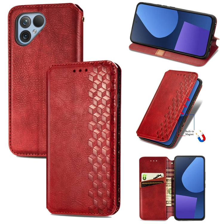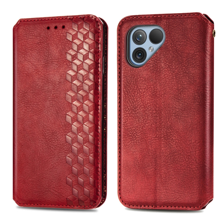 Funda para Fairphone 5 Cubic Grid Cuero Magnético Prensado (Rojo)