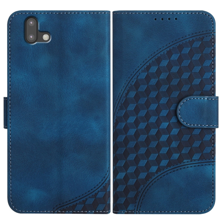 Funda de Cuero para Fujitsu Arrows Be3 Yx0060 con Relieve y Cabeza de Elefante con Cordón (Azul Real)