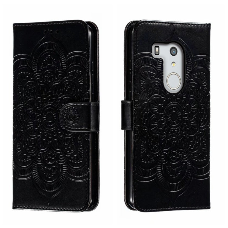 Funda de Cuero para Fujitsu Arrows We F-51B con Patrón Sun Mandala en Relieve (Oro Rosa)