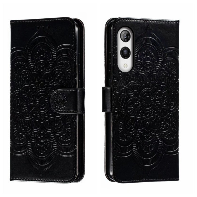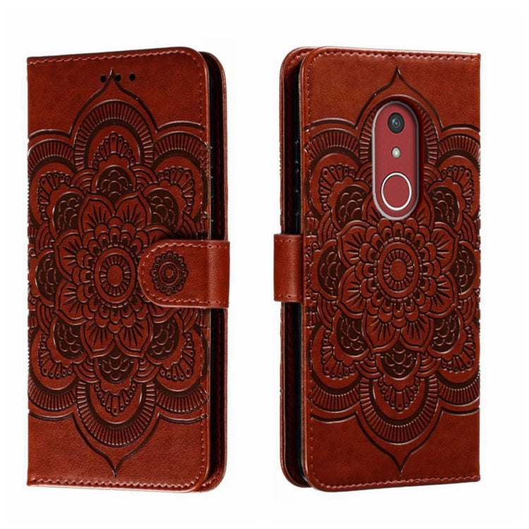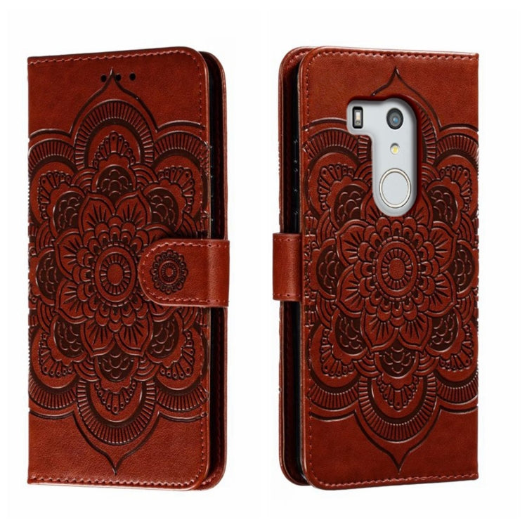 Funda de Cuero para Rakuten Hand 5G con Patrón en Relieve Sun Mandala (Marrón)
