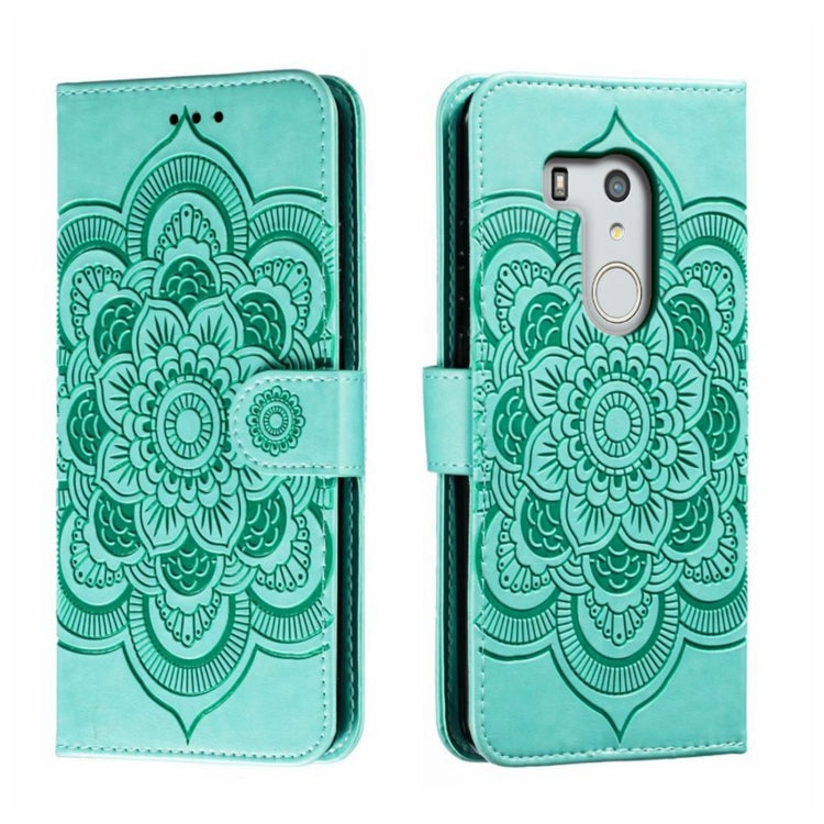 Funda de Cuero para Fujitsu Arrows U Sun Mandala con Patrón en Relieve (Verde)