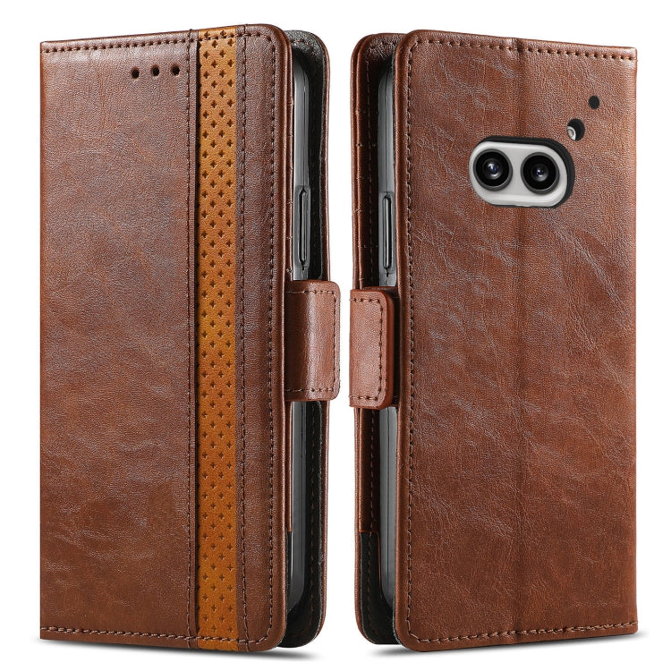 Funda para Nothing Phone 2A Caseneo Splicing Cuero con Hebilla Magnética Doble (Marrón)