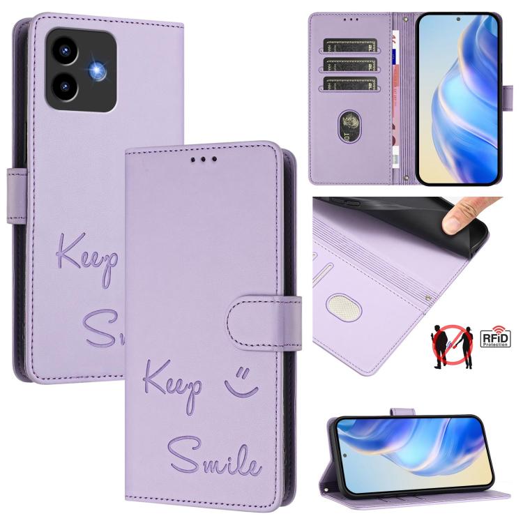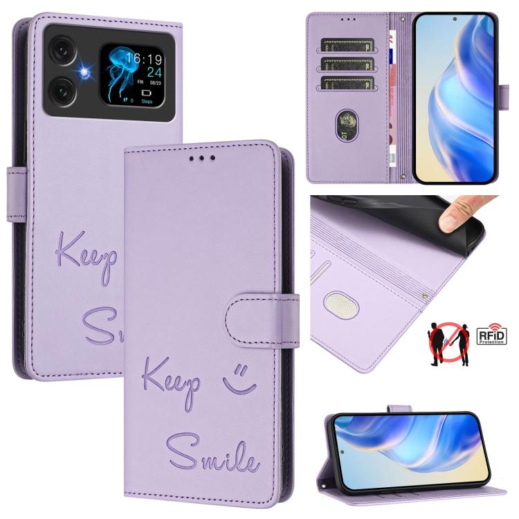 Funda de Cuero Rfid con Relieve Sonriente para Cubot Note 40 (Morado Claro)