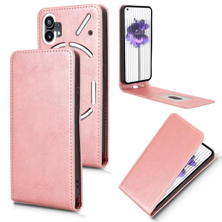Funda de Cuero Magnética con Tapa Vertical para Nothing Phone 1 (Oro Rosa)