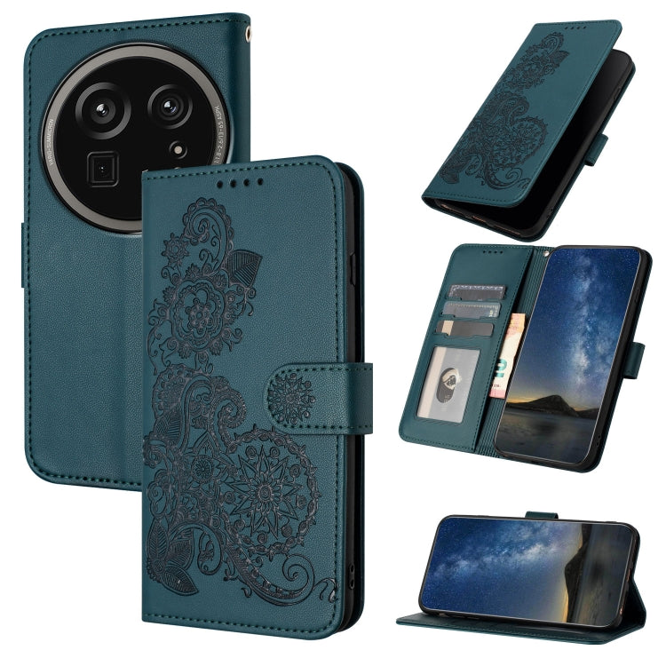 Funda de Cuero con Tapa para Sharp Aquos R9 Pro con Relieve Flor de Datura (Verde Oscuro)