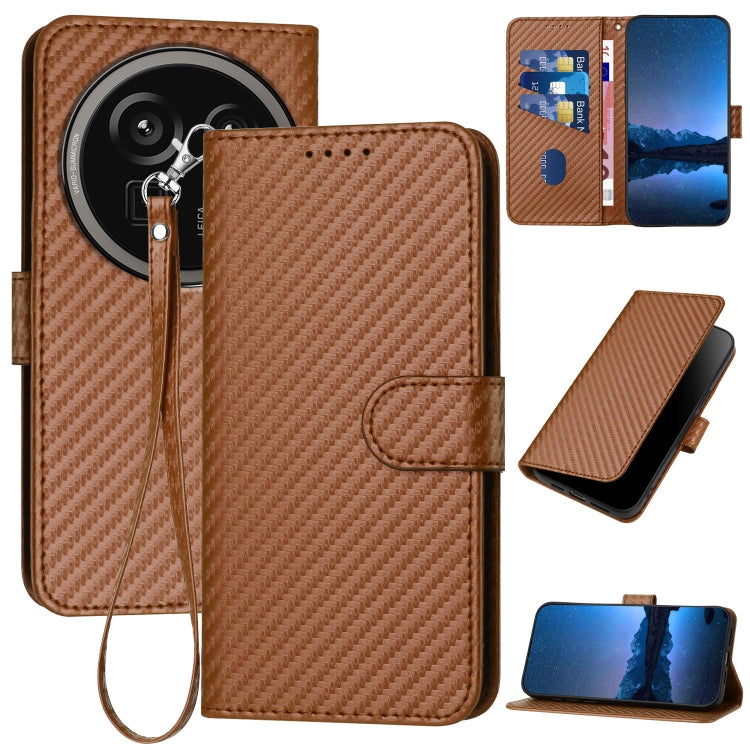 Funda de Cuero con Hebilla de Fibra de Carbono y Cordón para Sharp Aquos R9 Pro Yx0070 (Café)