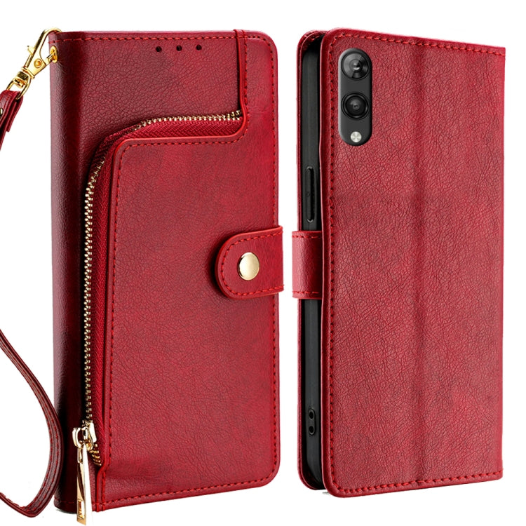 Funda de Cuero con Cremallera para Teléfono Rakuten Hand 5G (Roja)
