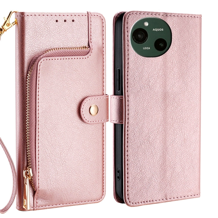Funda de Cuero con Cremallera para Teléfono Sharp Aquos R9 (Oro Rosa)