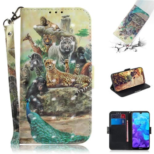 Funda de Cuero con Tapa Horizontal Animales 3D para Huawei Y5 (2019) Honor 8S con Soporte y Ranuras