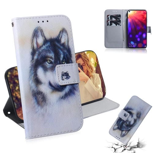 Funda Cuero con Tapa Horizontal y Dibujo Lobo Blanco para Huawei Honor View 20 con Soporte y Ranuras