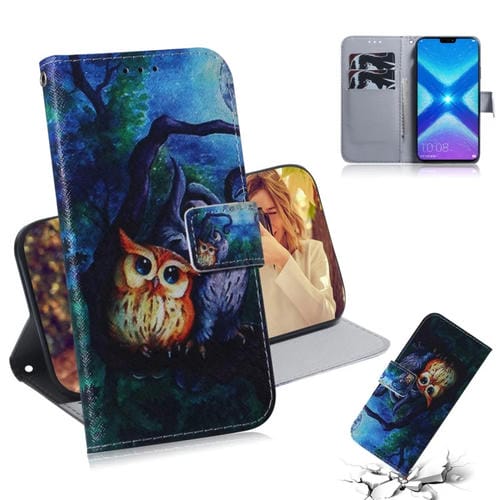 Funda de Cuero con Tapa Horizontal Huawei Honor 8X con Soporte, Ranuras y Billetera (Búho)