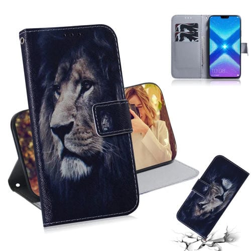 Funda de Cuero con Tapa Horizontal y Dibujo León para Huawei Honor 8X con Soporte y Ranuras