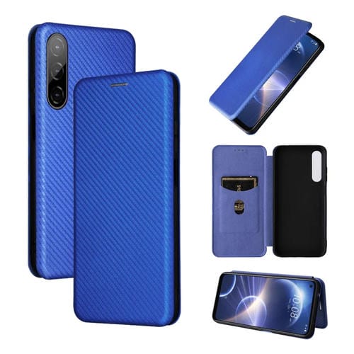 Funda de Cuero para HTC Desire 22 Pro con Tapa Magnética y Fibra de Carbono (Azul)