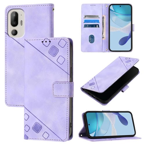 Funda de Cuero Rfid para HTC U24 Pro con Relieve Sonriente (Morado Claro)