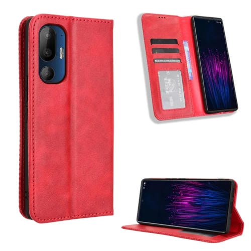 Funda de Cuero con Textura Retro y Hebilla Magnética para HTC U24 Pro (Rojo)