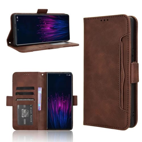 Funda de Piel Becerro con Ranuras para Tarjetas para HTC U24 Pro (Marrón)