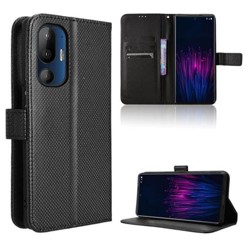 Funda de Cuero con Textura de Diamante para Teléfono HTC U24 Pro (Negro)