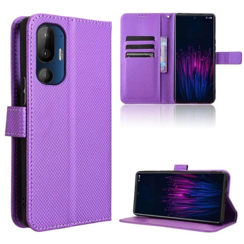 Funda de Cuero con Textura de Diamante para Teléfono HTC U24 Pro (Morado)