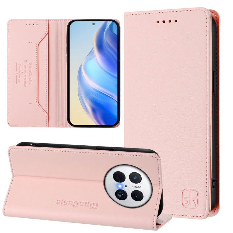 Funda de Cuero con Doble Pliegue y Succión Magnética para Huawei Mate 70 Pro Rc01 (Rosa)