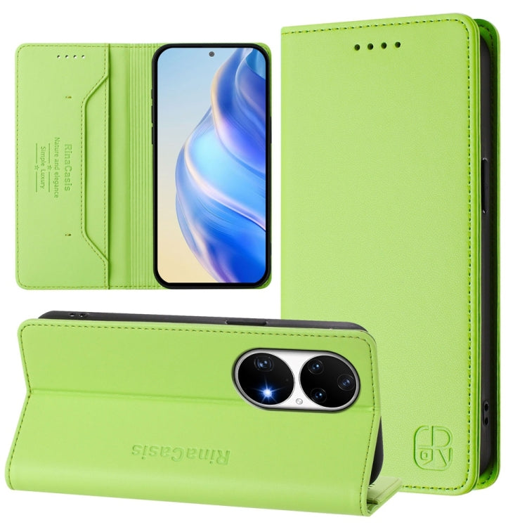 Funda de Cuero con Doble Pliegue y Succión Magnética para Huawei P50 Pro Rc01 (Verde Hierba)