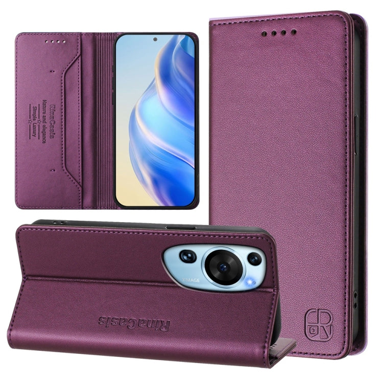 Funda de Cuero con Doble Pliegue y Succión Magnética Rfid para Huawei Mate 60 Rc01 (Violeta)