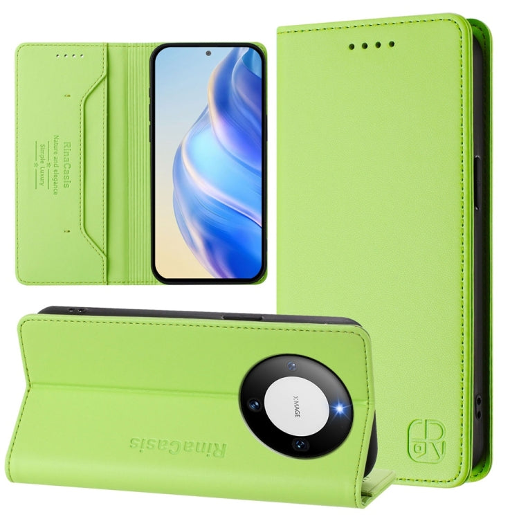 Funda de Cuero Huawei Mate 60 Rc01 con Doble Pliegue y Succión Magnética Rfid (Verde Hierba)