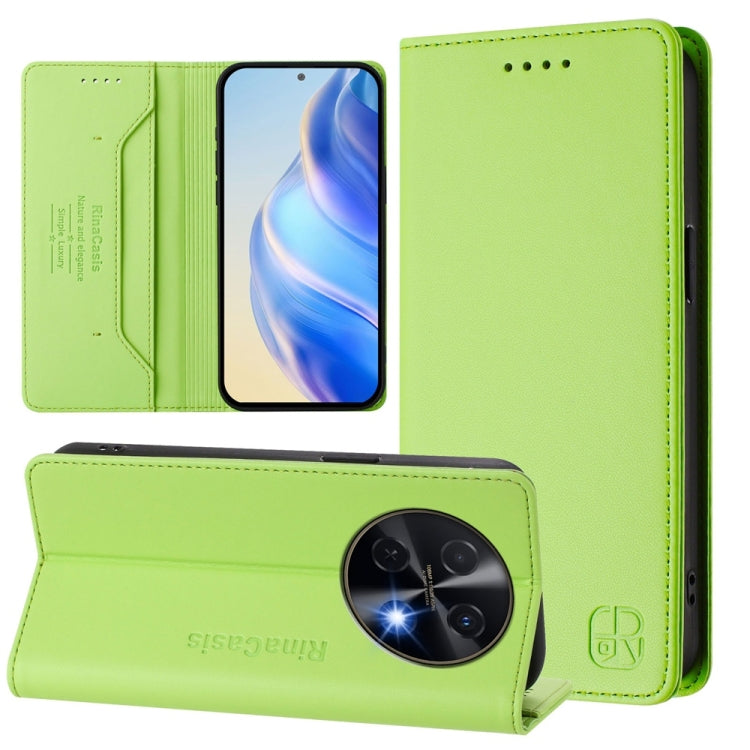 Funda de Cuero Huawei P50 Rc01 con Doble Pliegue Succión Magnética Rfid (Verde Hierba)