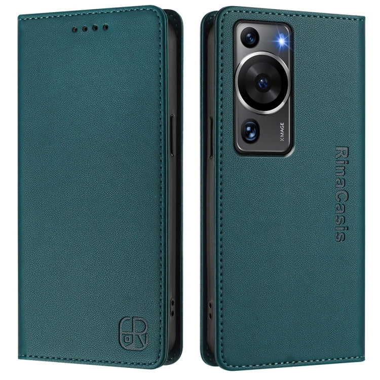 Funda de Cuero Huawei P60 Art Rc01 doble pliegue succión magnética Rfid (Verde Oscuro)