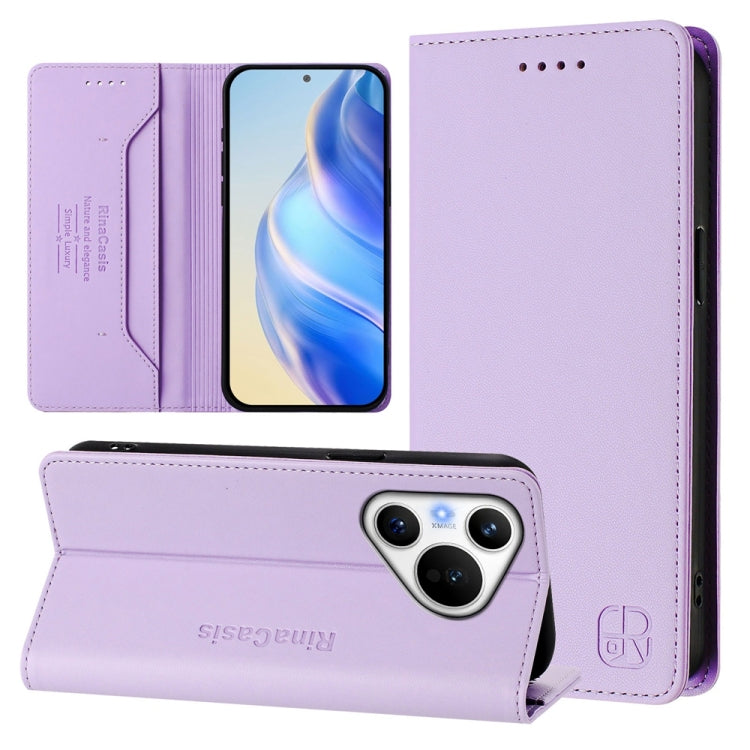 Funda de Cuero con Doble Pliegue y Succión Magnética Rfid para Huawei Pura 70 Rc01 (Morado Claro)