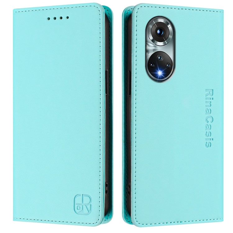 Funda de Cuero con Doble Pliegue y Succión Magnética Rfid para Huawei P50 Rc01 (Verde Menta)