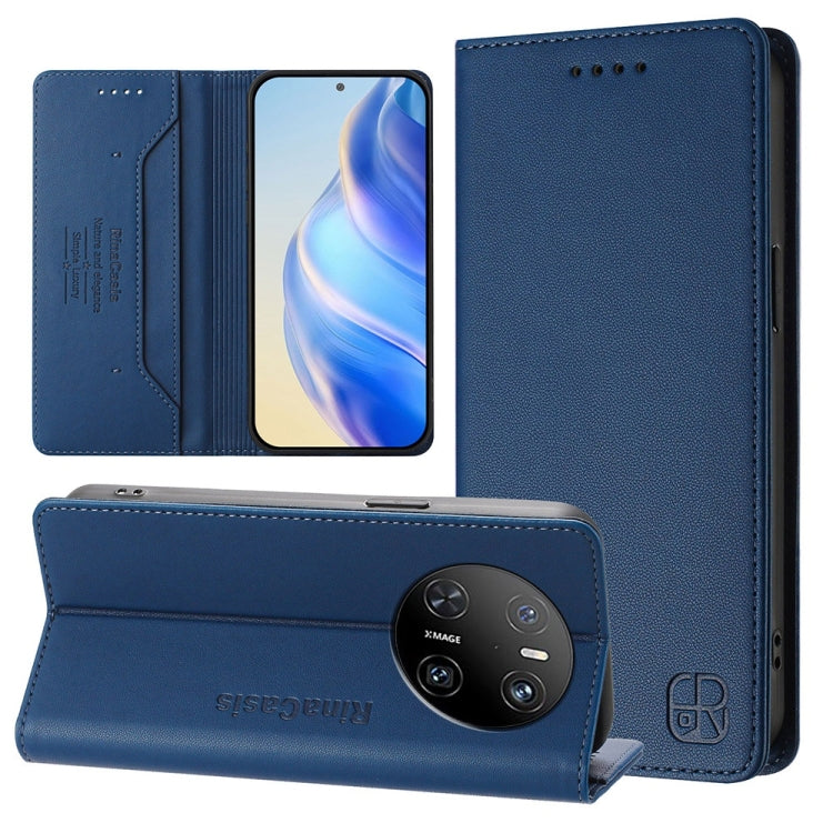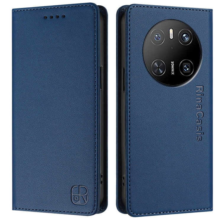 Funda de Cuero Huawei Mate 70 Rc01 con Doble Pliegue y Succión Magnética Rfid (Azul Oscuro)