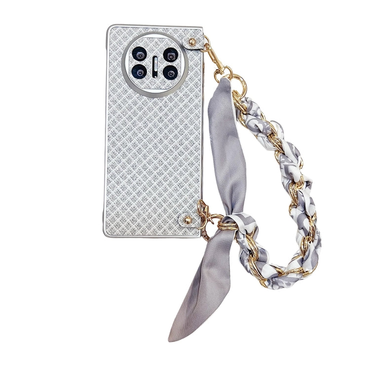 Funda para Teléfono Huawei Mate X3/X5 con Rombos Diamantes y Pulsera de Seda (Plateada)