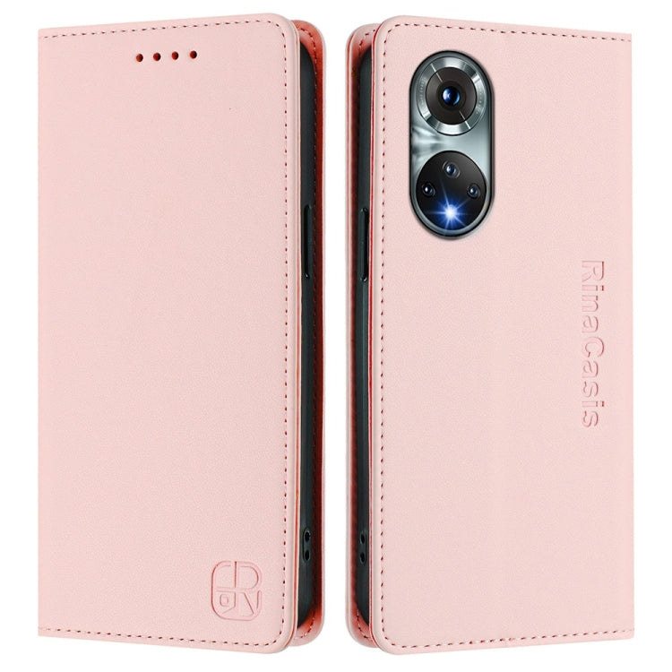 Funda de Cuero con Doble Pliegue y Succión Magnética Rfid para Huawei Nova 9 Rc01 (Rosa)