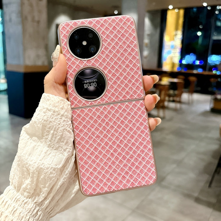 Funda para Teléfono Huawei P50 Pocket con Diamantes y Rombos para PC con Pulsera de Seda (Rosa)
