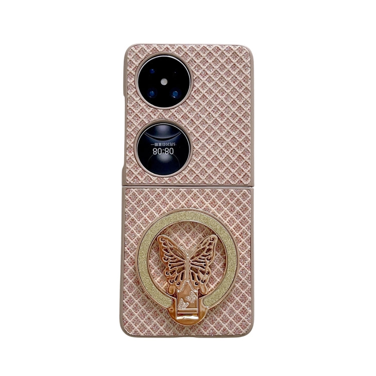 Funda para Teléfono Huawei P50 Pocket con Diseño de Rombos, Diamantes Brillantes y Anillo (Rosa)