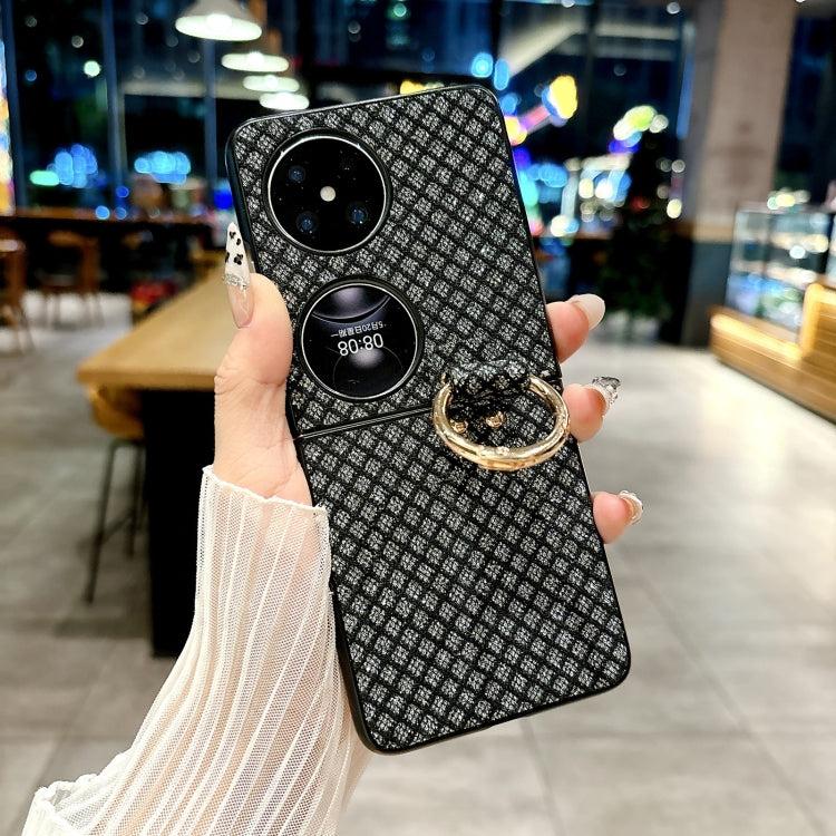 Funda para Huawei P50 Pocket con Diseño de Rombos, Diamantes Brillantes y Anillo (Negro)
